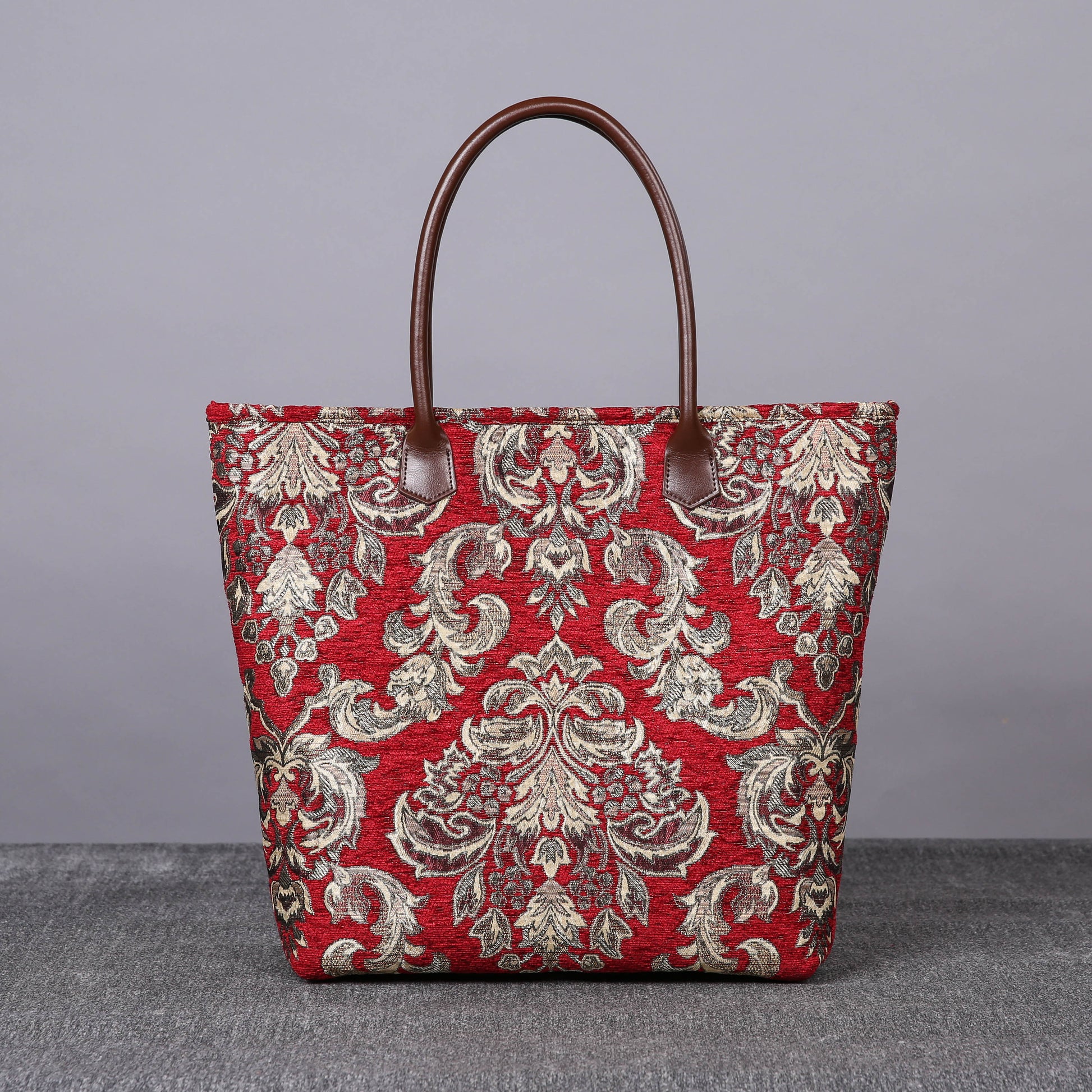 This gorgeous carpet tote bag is of premium quality, the main body is made of thick chenille carpet, it can stand still on its own; The handles and belt are genuine leather, heavy cotton canvas lining, the closure is with high quality vintage twist turn lock.