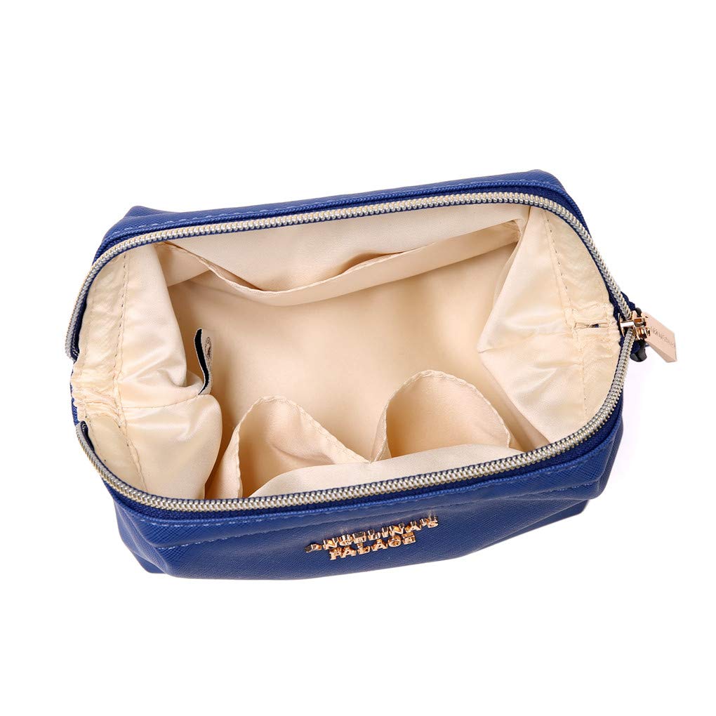 - Measurement: 6.5"Lx4"Wx4.5"H. Zip-top closure extends half-way down both sides for easy access. The bag size is moderate for your makeup and easy to throw in your purse.