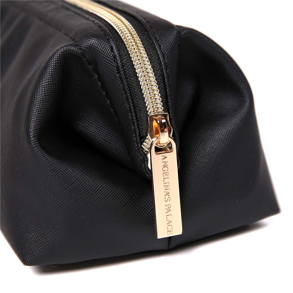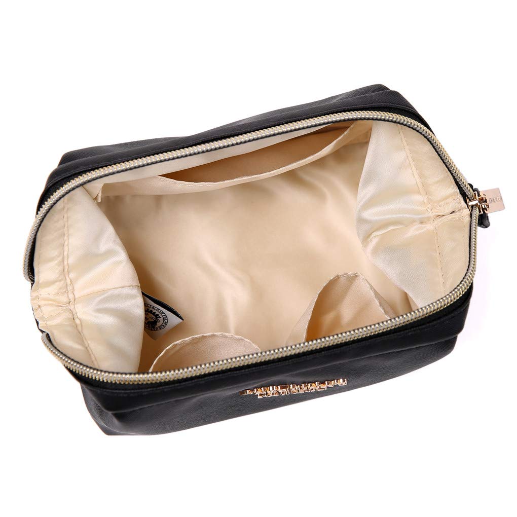 - This makeup bag is made from vegan letaher outside and soft satin lining which can protect your stuff from abrasion and prevent the pollution of accidental leakage.
