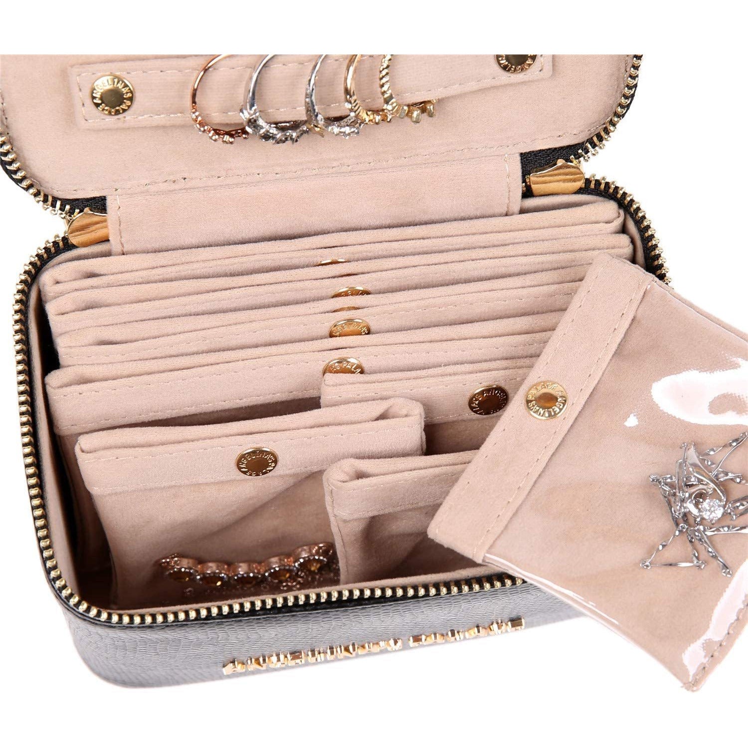- This gorgeous travel jewelry bag is made of vegan leather surface and padded velvet lining, effectively protect your jewelry from damage and scratch.