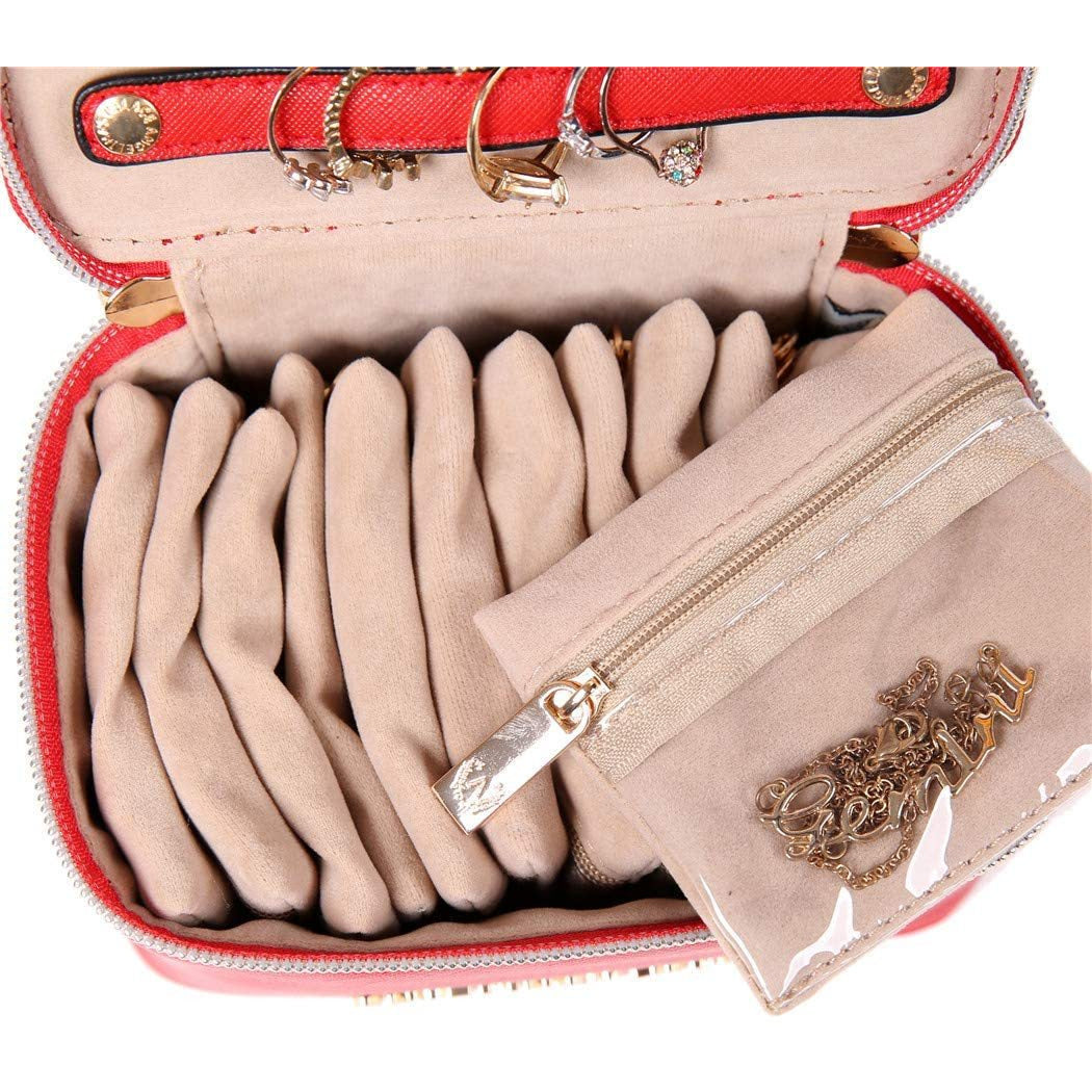 - This gorgeous travel jewelry bag is made of vegan leather surface and padded velvet lining, effectively protect your jewelry from damage and scratch.