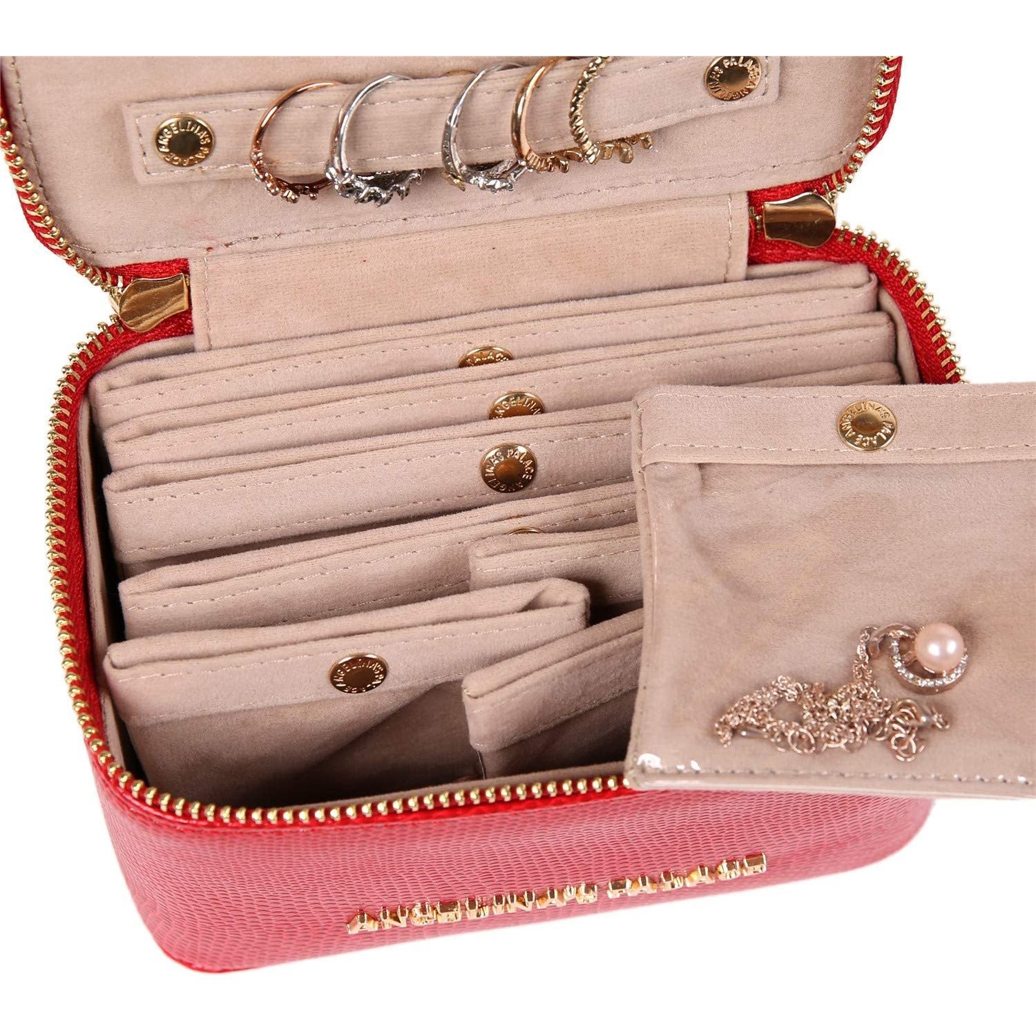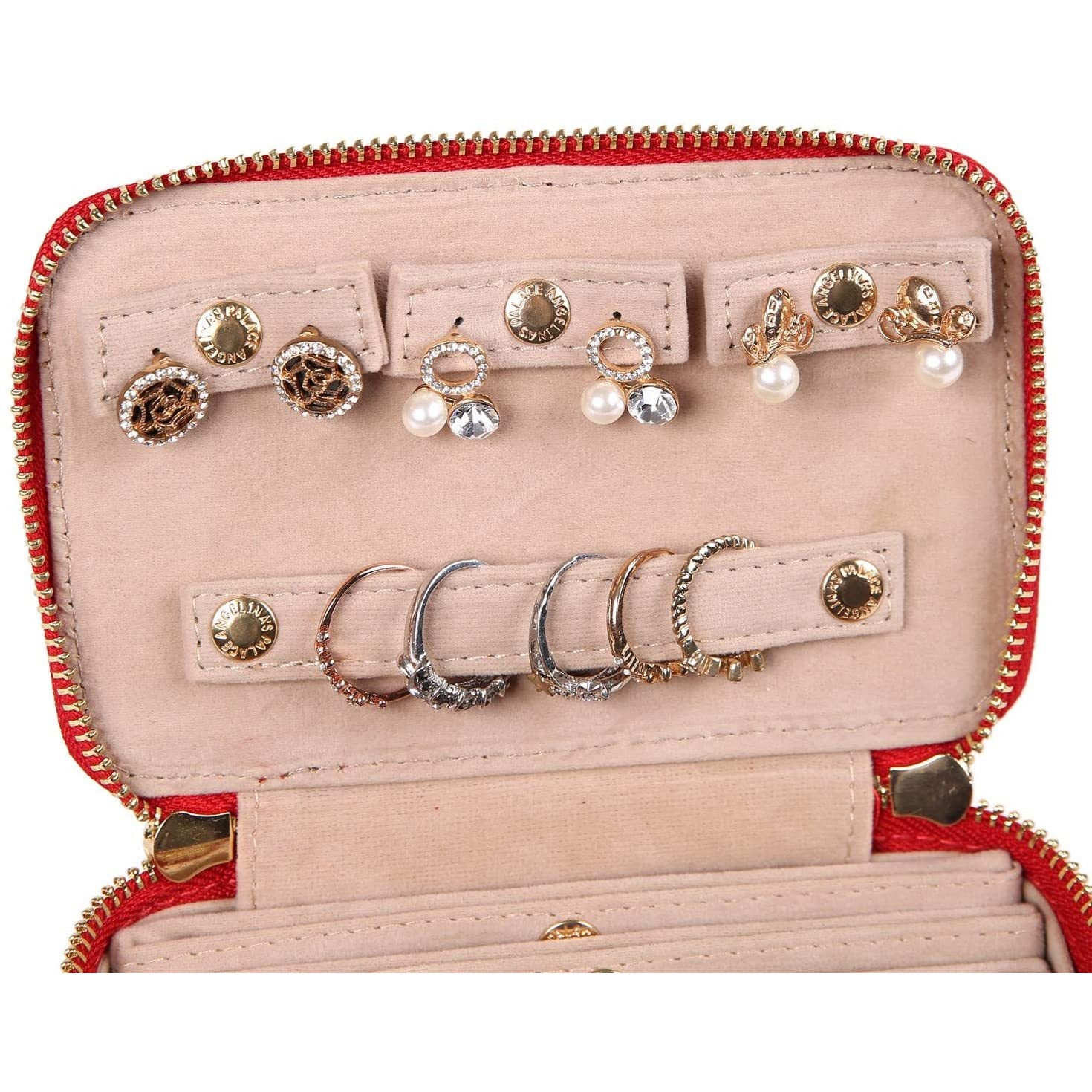 - This gorgeous travel jewelry bag is made of vegan leather surface and padded velvet lining, effectively protect your jewelry from damage and scratch.