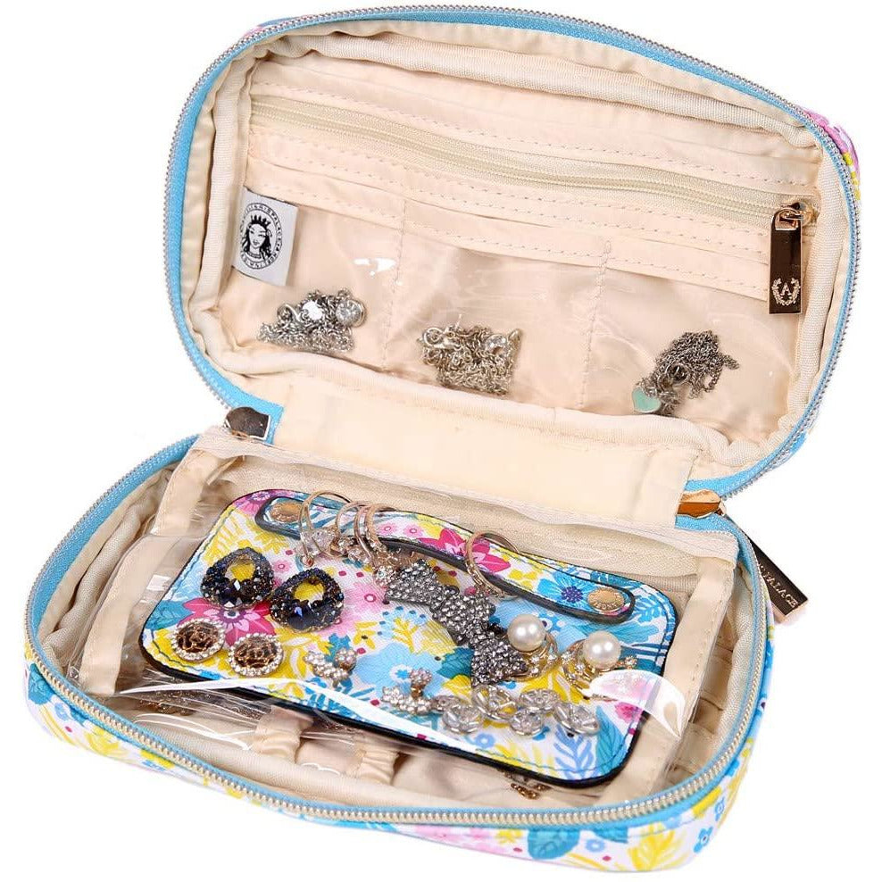 - This gorgeous travel jewelry bag is made of vegan leather surface and satin lining, effectively protect your jewelry from damage and scratch.
