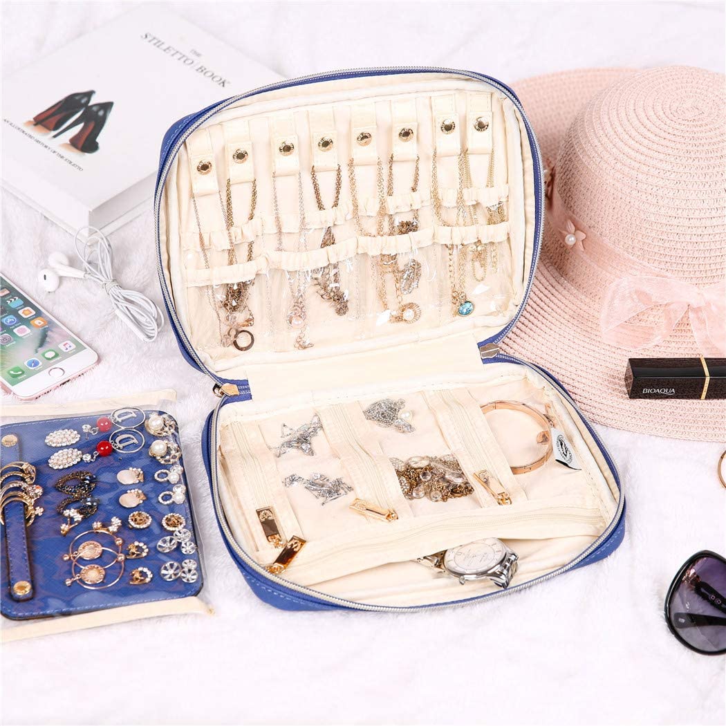 - This gorgeous travel jewelry bag is made of vegan leather surface and satin lining, effectively protect your jewelry from damage and scratch.