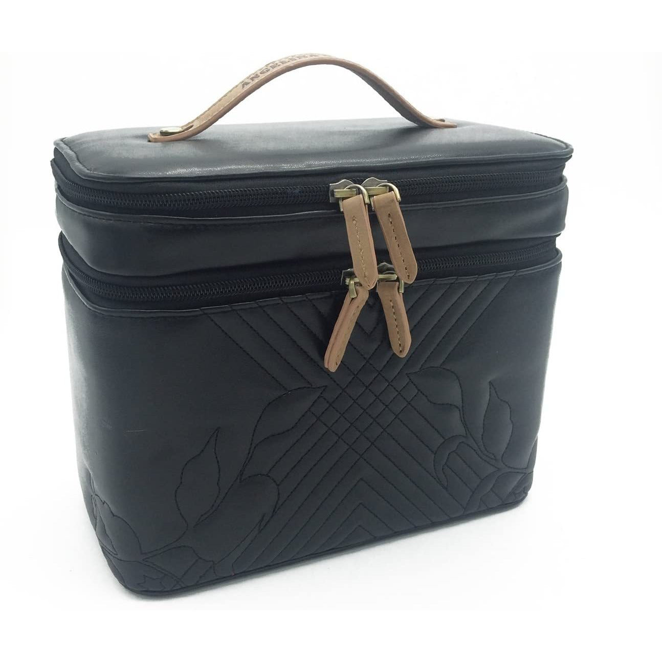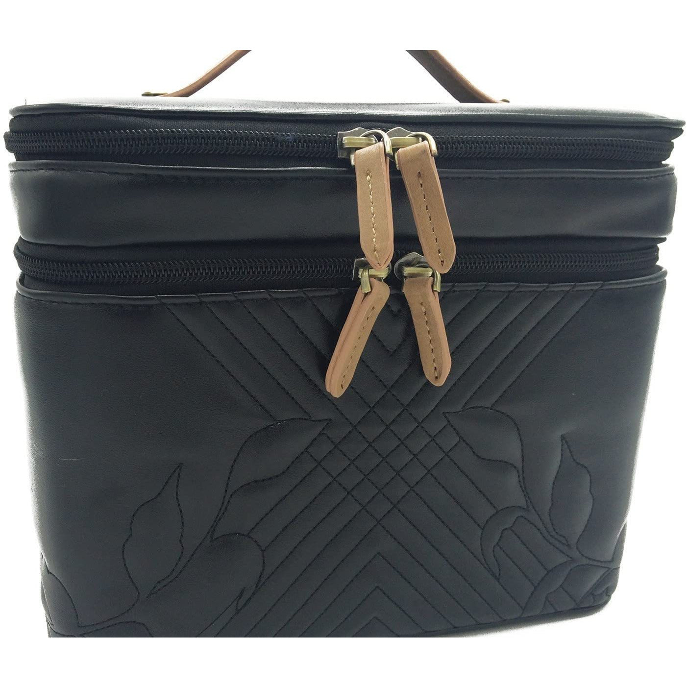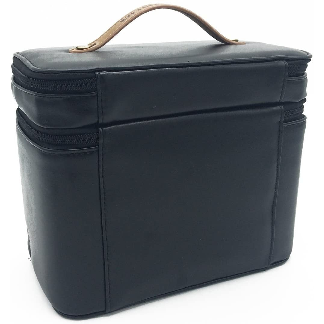 - Roomy main compartment contains all-in-one cosmetic organizer