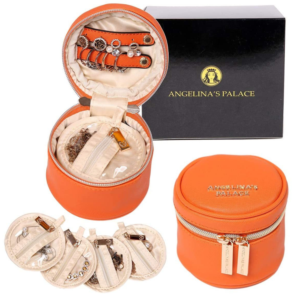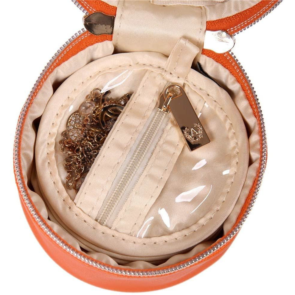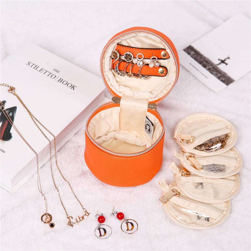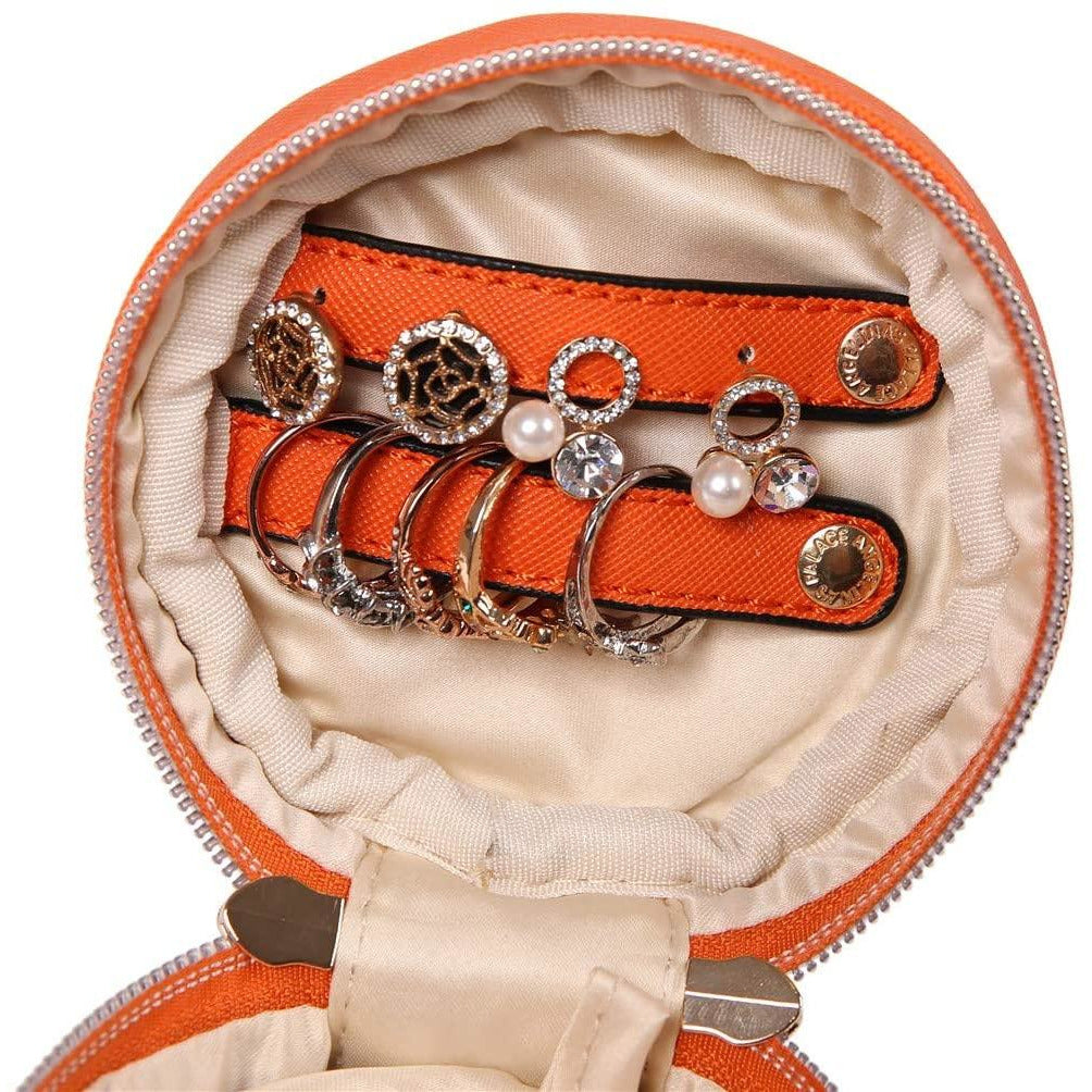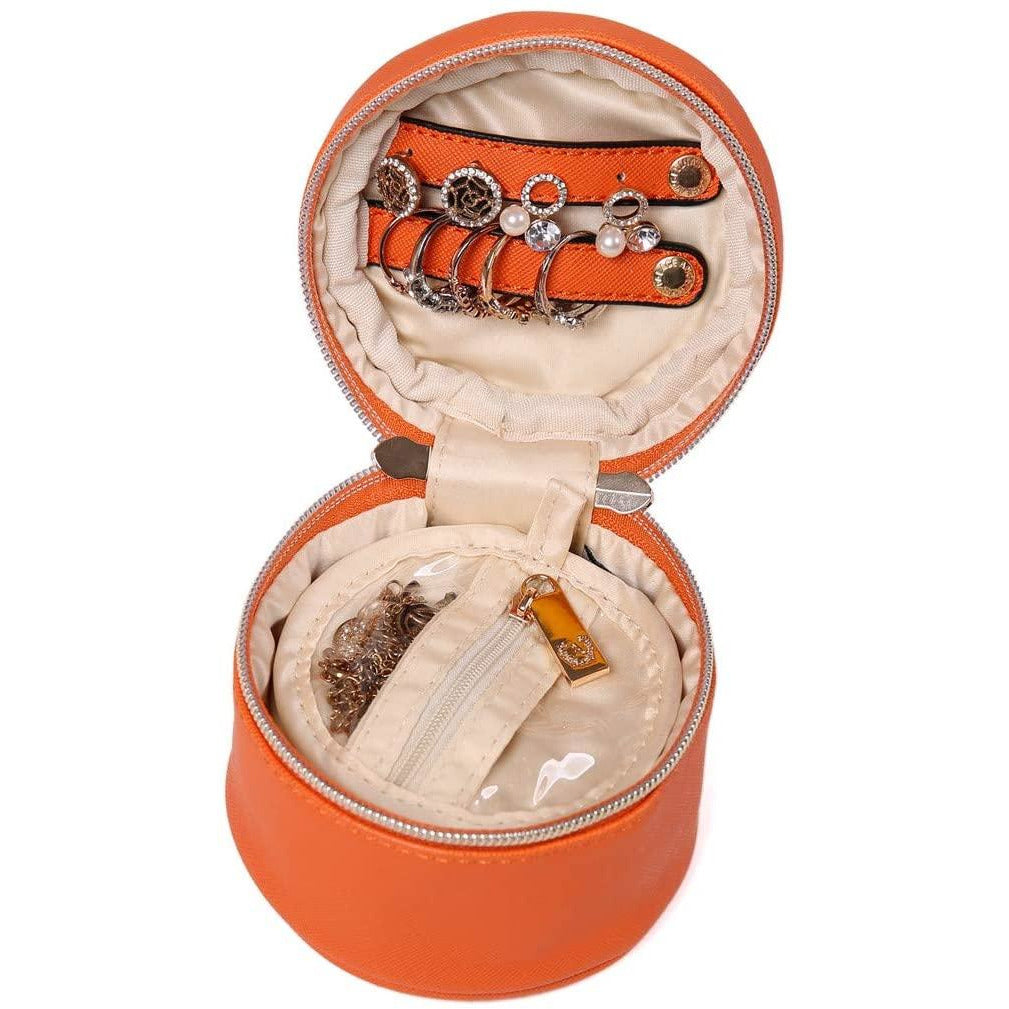 - Round Jewelry Case comes in top-grade vegan leather surface and satin lining,effectively protect your jewelry from damage and scratch.