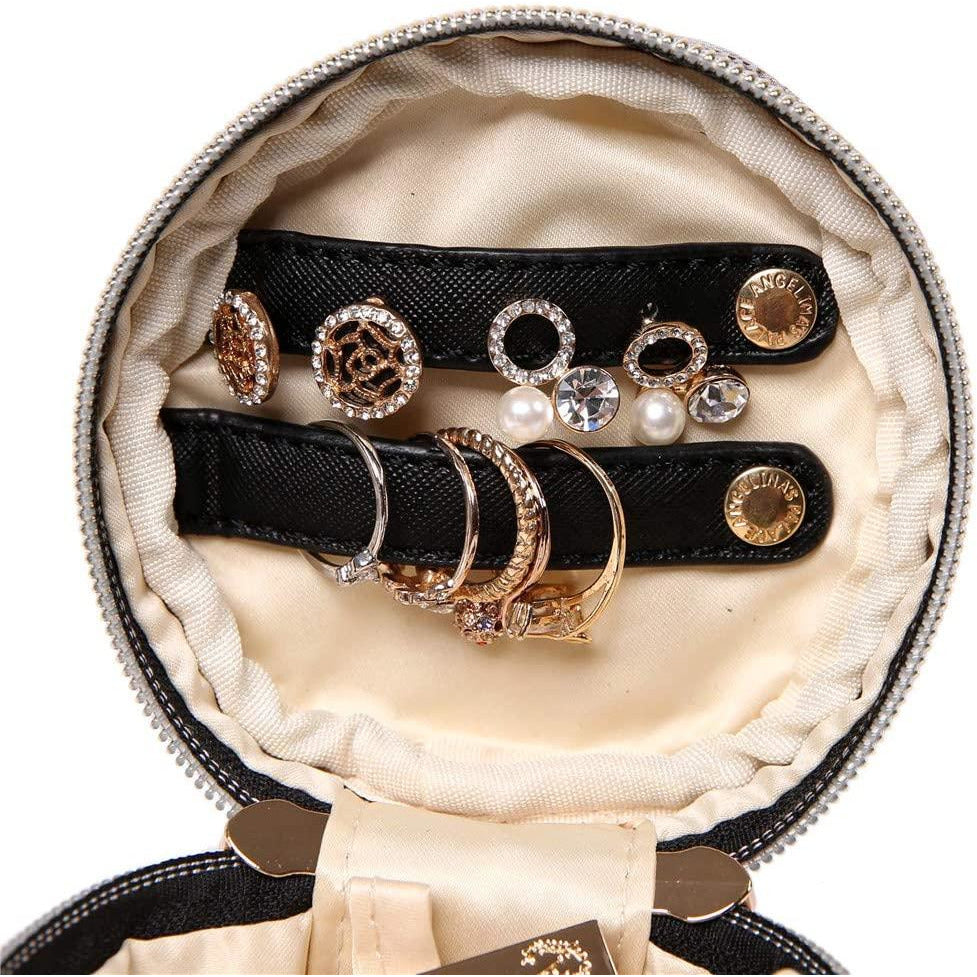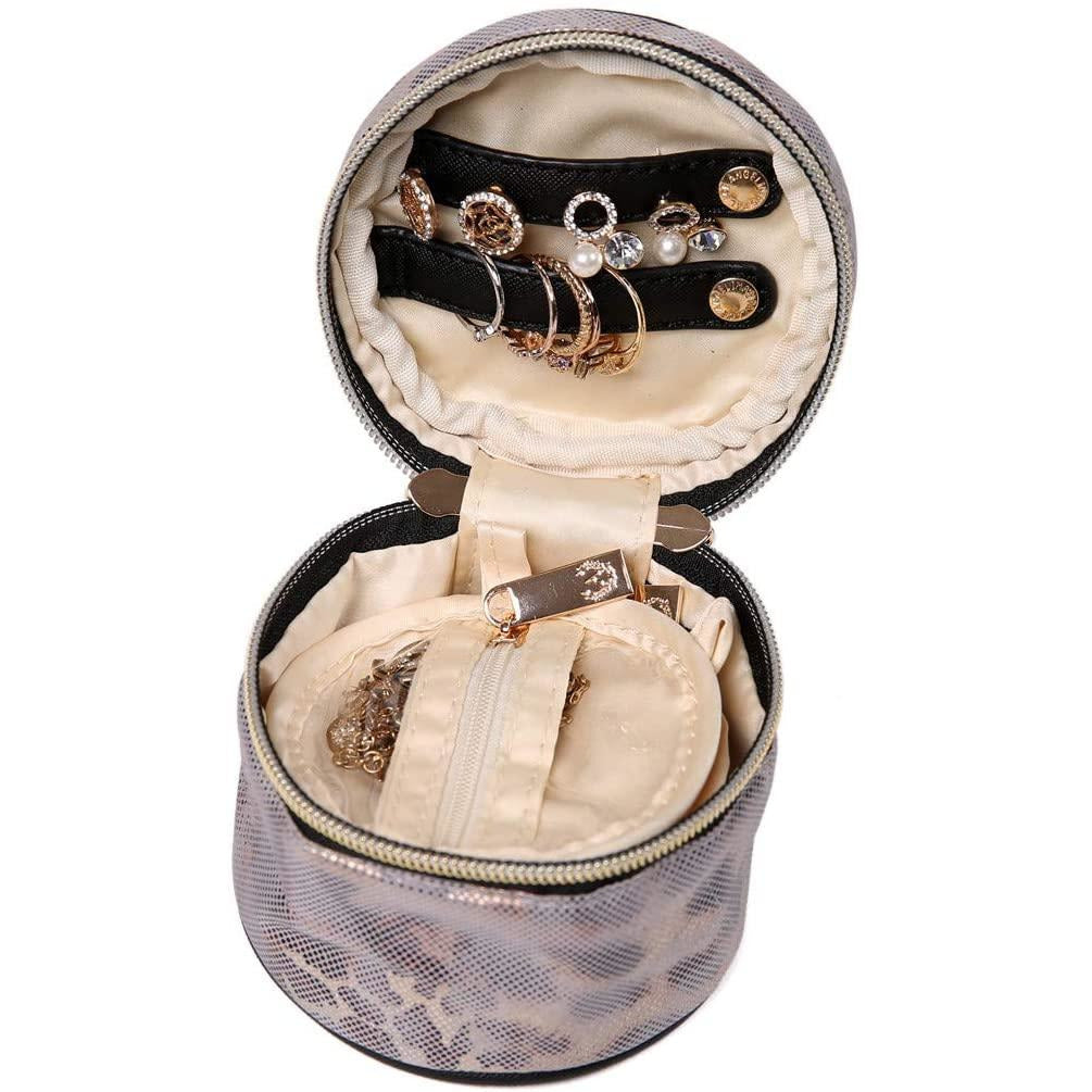 - Round Jewelry Case comes in top-grade vegan leather surface and satin lining,effectively protect your jewelry from damage and scratch.